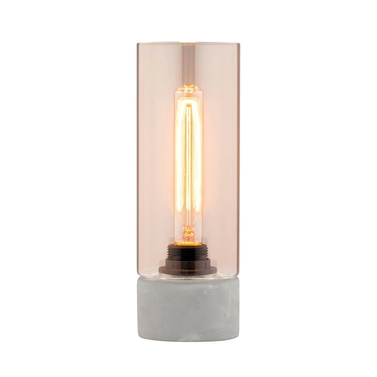 The Abel table lamp provides a contemporary industrial look. The grey concrete base with the contrasting glass shade is ideal to feature a decorative globe.