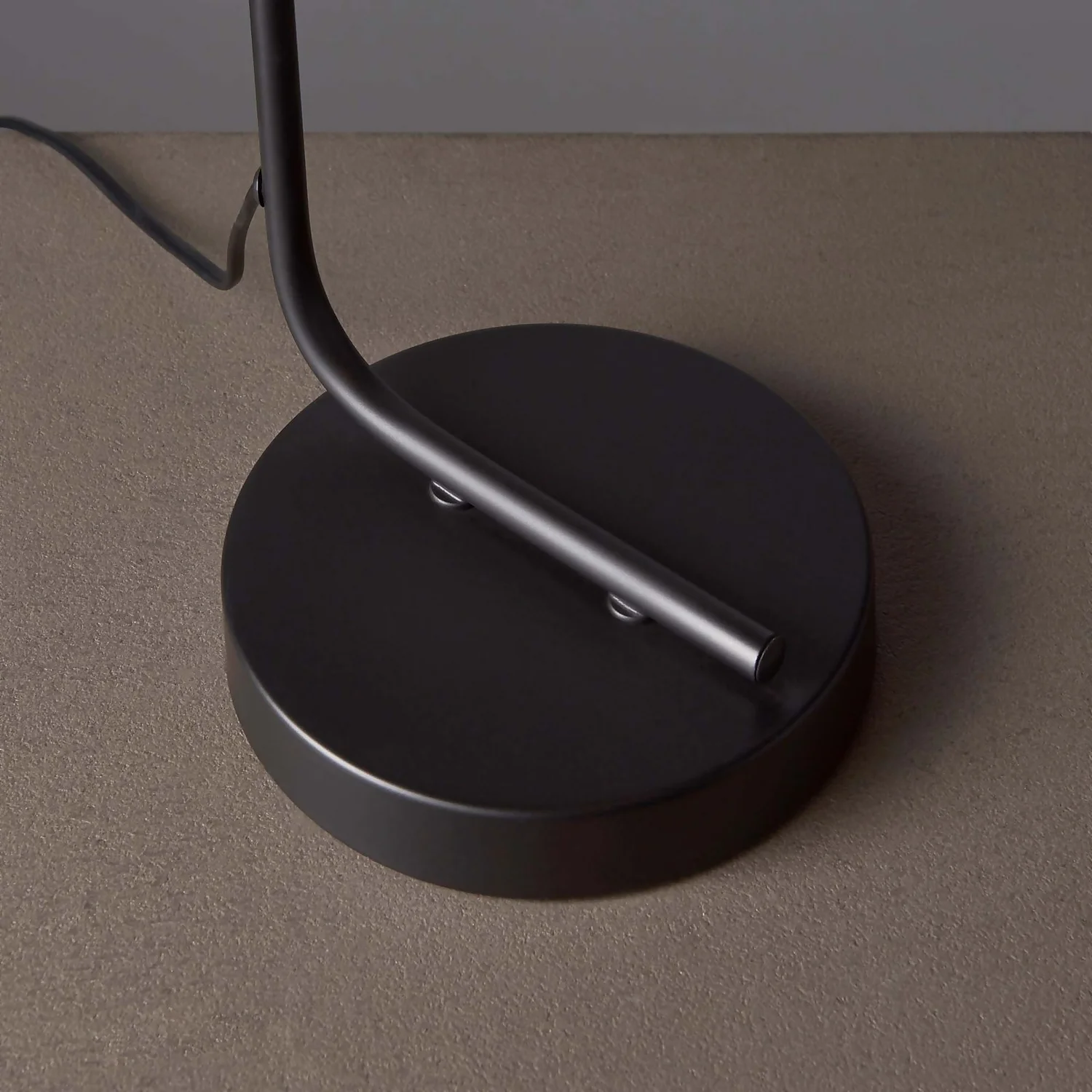 A modern table light for contemporary interiors. Matt black painted finish with clear glass shade and black flex detail with inline switch. Twin with E27 LED filament lamp for the latest on trend look.