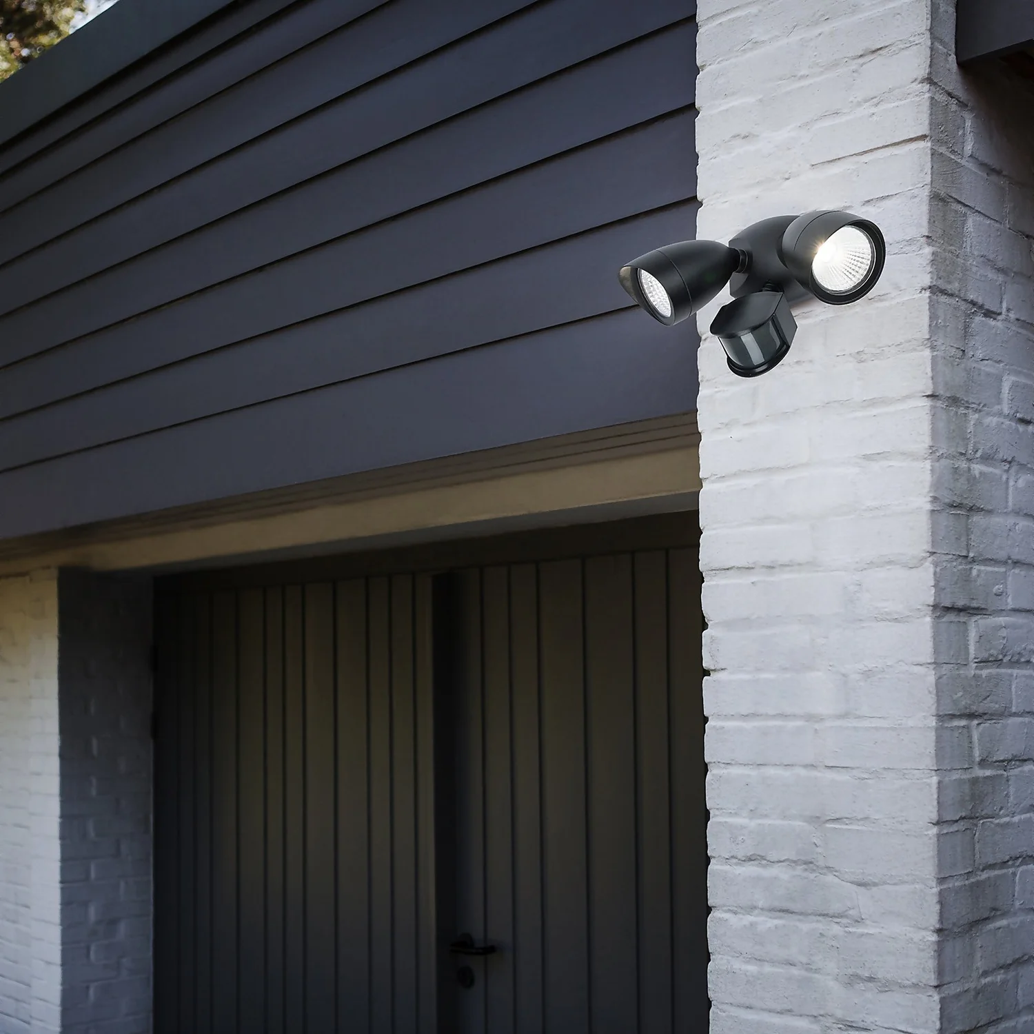 Lutec Shrimp Twin Head LED PIR Outdoor Wall Light – Black